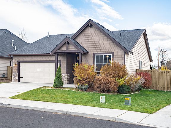 Single level Charmer in SW Redmond! This 1433sf home offers wood floors throughout the main living, primary separation, and fresh interior paint from the ceilings to the walls, doors and trim! The great room offers tall ceilings, ceiling fan, and a cozy natural gas corner fireplace. Kitchen boasts wood cabinets, tiled tops, and a raised breakfast bar. The solar tubes throughout bring in additional natural light. Primary has double vanities, a step in shower, walk in closet and water closet. Situated on a large .21 acre lot, with a fully fenced back yard and covered back patio. Automated underground sprinklers in front and back yard, mature landscaping. Double garage, with a man door to the side yard. There is a park just down the road, and easy access to Bend off Helmholtz. Welcome home!