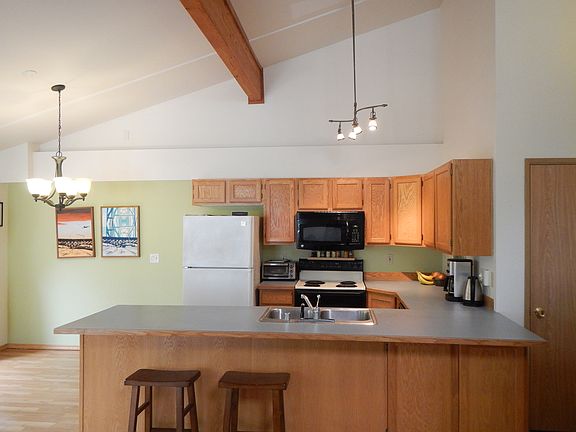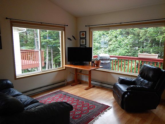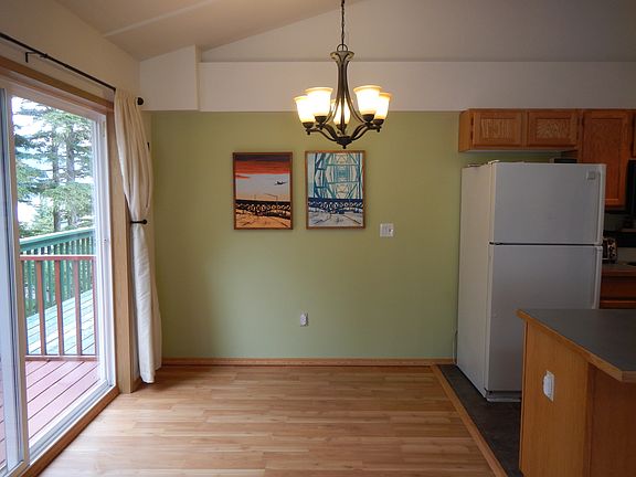Wonderful location just minutes from downtown Juneau. Vaulted ceilings, big windows, and a spacious kitchen invite you when you walk into this lovely 2BR/1.5BA attached home. The open floor plan for the living room, kitchen, and dining area is great for entertaining. Access to a spacious deck via sliding door from the living room is great for the BBQ. Good size garage! Laminate flooring in the living room, tile flooring in the kitchen, entry way, and bathrooms. Home has HVAC system which controls air quality and humidity.