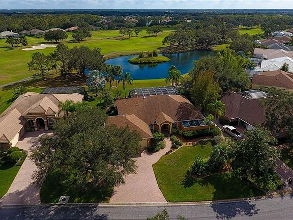 Picturesque and designed to perfection, this magnificent custom home overlooks sweeping water and golf course views within River Wilderness. Located on one of the quietest streets within this private golf and country club, your daily decisions will range from when the ideal tee time is, how many laps to swim today, and whether to take up painting so you can truly capture your view. Enter this custom-built four-bedroom home through leaded glass French doors to an open living area with vaulted ceilings and a layout certain to make any host proud. Entertain in the formal living or dining room while the great room is perfect for family time. Keep work and play separate with a sleek office featuring Brazilian cherry hardwood floors. You'll feel like you've escaped to a European lodge and spa within the master suite. Pampering yourself will be the order of the day in the master bath with soaking tub, Roman shower, and a private, enclosed outdoor area for sunbathing. Imagine yourself relaxing on the oversize lanai with a large pool looking across a lake and one of the fairways. This home went through a major renovation in 2006, extending the back of the house and installing porcelain tile throughout while numerous updates were completed in 2014. Golf course living with membership is optional; no CDD and low HOA dues. The Ft Hamer bridge gives easy access to Lakewood Ranch and Sarasota while the endless recreation of Florida's Gulf coast awaits.