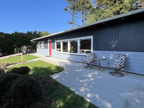 PACIFIC OCEAN & CITY VIEWS from this pristine country charmer located at the end of a private drive overlooking the city to watch the beautiful sunsets from the coziness of your own family room, or outside reclining on the patio. Very well built and perfectly maintained. Newly remodeled and move-in ready with a completely new kitchen, solid quartz counter-tops, full quartz backsplash, soft close drawers, stainless steel drawer pulls, Futuro stainless charcoal filtered range hood, and all new energy efficient appliances. Luxury 100% waterproof ridged core vinyl plank flooring, new self-feeding pellet stove, wood-beamed ceilings throughout, built-in cabinets with marble top in master bedroom, and a new roof 6 years ago. Oversized laundry/utility/storage room off the backside of the kitchen with two exterior entrances and rear yard access for gardening. Offering 3 bedrooms and two full baths, located in the heart of the city and walking distance to Riley Creek Elementary School, the grocery store, and restaurants. While just a few minutes' drive to the amazing sandy beaches, hiking, fishing, sailing, kayaking, rafting, and much more! See the virtual tour for a digital walkthrough.