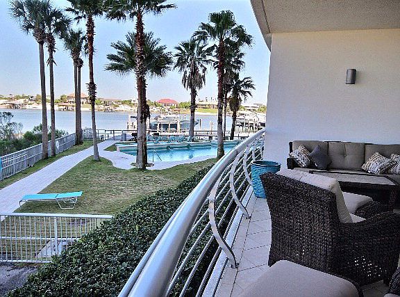 LARGEST 2 Bedroom in BELLA LUNA, one of the most sought buildings on the Gulf Coast. BELLA LUNA sits on Ole River, just across the street from the white, sandy beaches of the Gulf of Mexico in Orange Beach, AL. 2 Bedroom, 2.5 Bath, CORNER UNIT with BUNK ROOM and Massive WRAP BALCONY with great western waterfront views of Ole River and views of The Gulf. This spacious (almost 2000 sq ft), fully furnished condo offers high-end finishes, FLOOR-TO-CEILING GLASS EXTERIOR WALLS, Tile Throughout, Upscale Furnishings, Granite, Stainless Steel Commercial Grade Appliances, Wet Bar with Wine Cooler & Ice Maker, Full-Size Laundry Room with Utility Sink. BELLA LUNA 101 offers the convenience of 1st floor entry without the hassle of elevators, but an elevated balcony for privacy. Pets allowed. Comes with covered, assigned parking and outside storage. Enjoy all the AMENITIES this GATED Community has to offer including an Indoor Pool, 3 Outdoor Pools, Fitness, Steam Room, Dry Sauna, Owner Lounge, Theater, Boat Slips, and On-Site Security. Additionally, Bella Luna offers deeded & gated BEACH ACCESS directly across the street. EXCELLENT RENTAL POTENTIAL! *A few decor changes since photographed.*