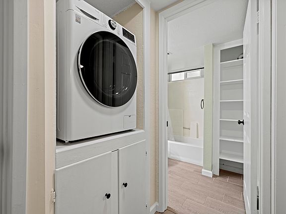 Beautiful separate 1 bedroom/bathroom unit with its own entrance. This unit has its own kitchen, laundry and bedroom with bath. The kitchen comes with stove and refrigerator. Newer washer/dry combo is located in the adjacent room, next to the master bedroom. The master bedroom is a good size with adjacent spotless bathroom. Landlord prefers 1 year lease. All utilities are included in this lease. No smoking and parking is available on the street in front of the home.
