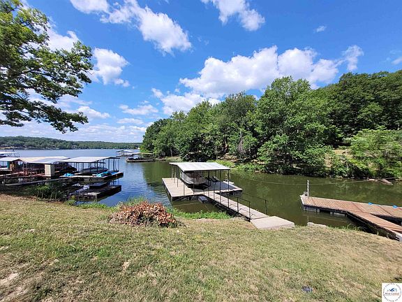 So many possibilities! Adorable waterfront cabin on 77 mile marker of Lake of the Ozarks. 150 ft of lake frontage, covered dock with 30 ft slip, boat lift and jet ski lift. Wait for it.... ALSO 1300+ square ft garage with kitchen and full bath. Whether you need the workshop/storage space for all of your lake toys, a man cave to make all of your friends jealous OR easy conversion to a large home and keep the cabin as a guest house. Easy walk to the water, great fire pit area, 2 storage buildings, close to marina and lakefront restaurant/bar. Fantastic income potential as Airbnb! Come check it out!!