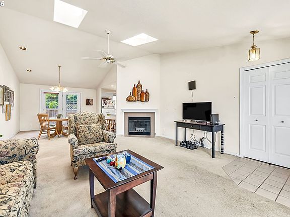 Lots of potential in this one level high ceiling home in wonderful neighborhood on a quiet cul-de-sac. 2 Skylights brighten this lovely home but it does needs new floor coverings and fresh paint.Good value!