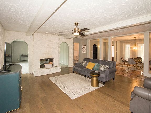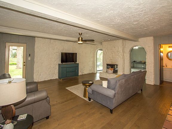 Great updated house with inviting large front porch. Double sided fireplace in living room and game room. Open dining room. New roof 2015, HVAC 2012, hot water tank 2020. Thermal windows. Fresh interior and exterior paint, new carpet, light fixtures and fans. House was built without a garage, but driveway leads to a nice double carport in the back of the house. Jenks Schools. Move in ready, must see!