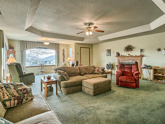 View the city lights, gorgeous sunsets, and the storms rolling thru the Valley from this nicely maintained single-level home! This home features a great open floor plan with lots of natural light throughout. The kitchen is nicely appointed with a wall oven, cooktop, new sink and disposal, a newer refrigerator and microwave. Formal and informal dining plus breakfast bar seating in the kitchen. The living room boasts a gas fireplace, large windows, and coffered ceilings w/ ceiling fan. The master suite features a walk-in closet, trayed ceiling w/ fan, and a slider to the back patio. The additional 2 bedrooms are nicely sized, one features a walk-in closet while the other has 2 standard closets. Hall bath is good sized and there is abundant storage throughout the home. The front yard has been professionally landscaped recently and is very easy care. Check this clean, comfortable and convenient home out today, you will not be disappointed!