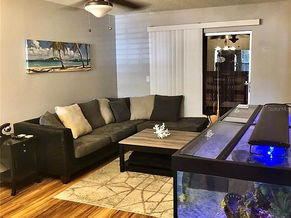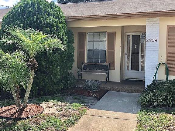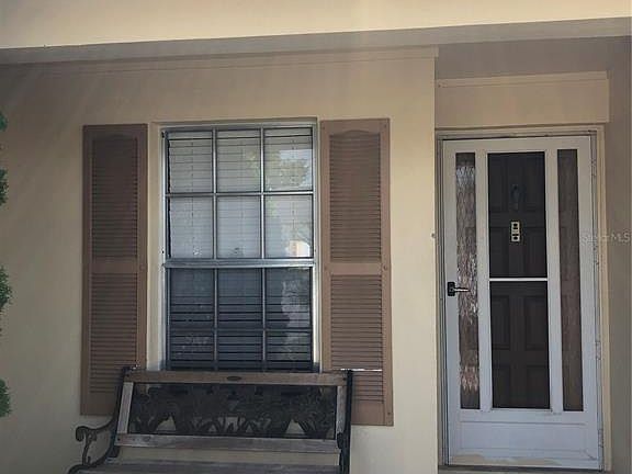 Don't miss out on this move-in ready 2 bedroom/1 bathroom villa in the community of Veterans Villas. Brand new AC! The kitchen is open to the living room and dining area for great entertaining space. The living/dining room space has sliding glass doors leading to your enclosed patio. The first bedroom has a walk-in closet and updated bathroom is located between the 2 bedrooms. This villa also includes a washer/dryer inside and extra closet for more interior storage. Outside you have a porch and 2 parking spots in the front and in the back an enclosed patio with a storage closet and a paved back area perfect for a grilling. This community has very low fees that include lawn care, no age restrictions and pets are allowed.