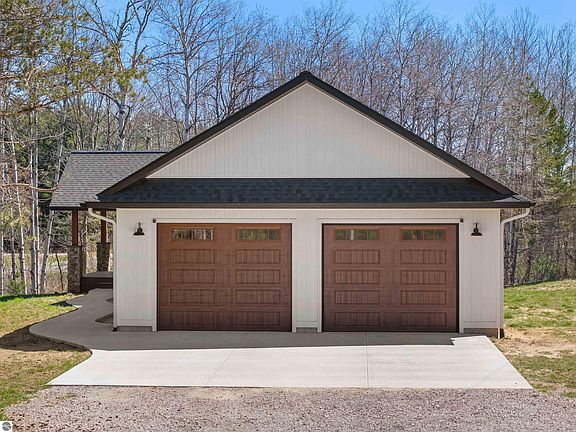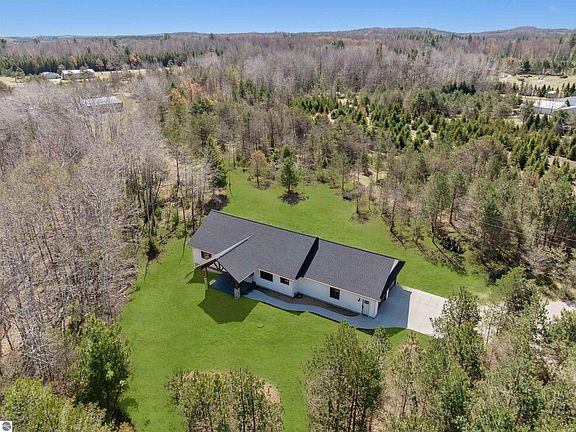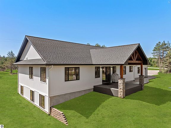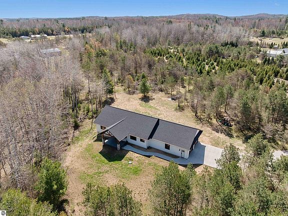 Have you been dreaming about building a new home in the country, but do not want to go through the hassle? This less-than-two-year-old home has so much to offer. It is located south of Manton on 4+ country acres and has natural gas and high-speed fiber internet! The home greets you with vaulted, beamed ceilings, stained pine accents in the fireplace surround, the range hood, and the 12’ butcher block island. Combine that with the white trim, subway tile backsplash, craftsman style doors, and high-end Provenza LVP flooring, and you'll get that fresh modern farmhouse feel! The primary bedroom has a sizeable walk-in closet, a private bath, and a tile shower. Both main floor bedrooms feature whitewashed nickel gap ceilings. The lower level brings you another bedroom, a spacious recreation room, a full bathroom, and plenty of unfinished storage space. The garage is extra deep, allowing for full-size vehicles and additional storage. The outside of the home has a clean, modern look with black windows, white vinyl board-and-batten siding, and is showcased by the cedarwood porch elegance and stacked stone pillars! This home was crafted with pride by locally respected Terry Porter Builder and offers supreme energy efficiency, Anderson windows, Delta and Kohler faucets, high-end trim work, a high-efficiency water heater, and many more quality touches. Be sure to watch the video tour of the home, check out the construction highlights document, and then come see for yourself the opportunity to move into your dream home!
