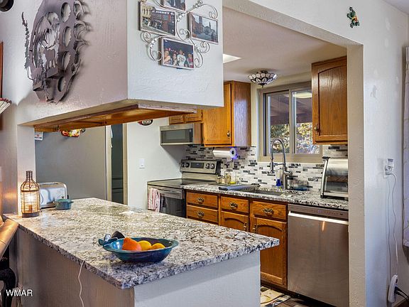 A great home in Heber-Overgaard. This 2 bedroom, 2 bath has plenty of room with over 1100 sqft. Pride of ownership is evident as you can see updates through out the house. New flooring, granite countertops, stainless steel appliances, custom shower... the list goes on. Outside you will find an oversized garage, with plenty of storage, a utility shed, a tool shed, and a greenhouse. Located on a .31 acre corner lot, adorned with tall pines, an abundance of fruit trees, a vegetable garden, lilacs, and even berry bushes. The wrap-around deck was recently added, providing the perfect place to relax and enjoy the cool mountain air.