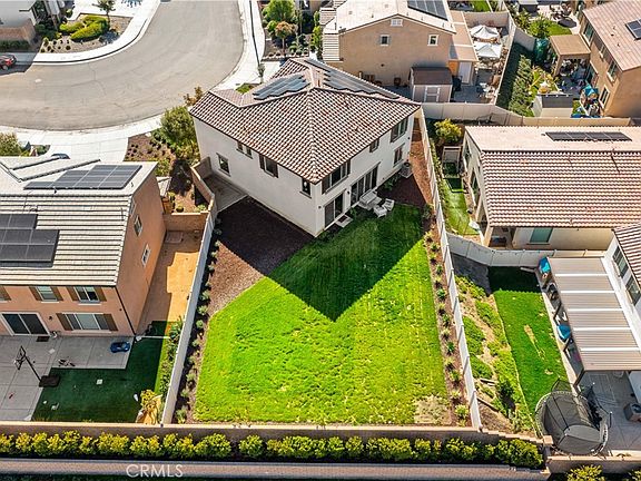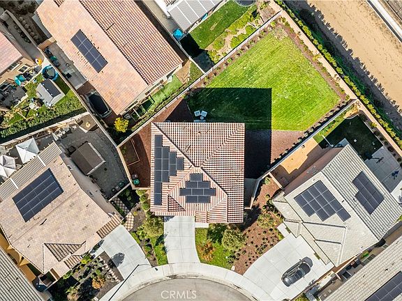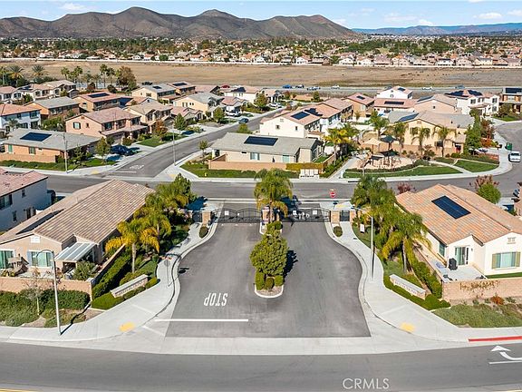 Welcome to this gorgeous nearly new Menifee PAID OFF SOLAR home nestled in an 7,841 sq ft largest lot in a cul-de-sac located in the highly sought after Reflections community of The Lakes in Menifee! Offering 5 large bedrooms, 3 full baths and state of the art technology. As you enter the home you are greeted with beautiful sleek finishes throughout, neutral flooring, custom paint, an abundance of light and beautiful panoramic views! As you continue in you’ll notice the open floor plan with an office to the right of the entryway. Beyond the entry you'll find the spacious family room complete with dual sliding doors into the backyard, which further extends the living space outdoors, making this home perfect for entertaining! The spacious gourmet kitchen features, a large walk-in pantry, quartz countertops, oversized center island with under mount sink, recessed accent lighting, 5 Burner Countertop Gas Stove with stainless steel vent hood, built-in oven, microwave, dishwasher and custom cabinets with lots of storage! The downstairs also features a bedroom with a full bath. As you walk upstairs you are met with the spacious master suite offers high ceilings, lots of natural light and a private bathroom featuring an enormous walk-in shower, dual sink vanities with quartz countertops and a large walk-in closet. Down the hall features a loft, the remaining bedrooms and bathrooms, and the laundry room. The spacious backyard is entirely irrigated, landscaped & gorgeous panoramic mountain views, featuring unique touches such as a 10'x15', 12"-deep sandbox and an irrigated garden bed. This home comes equipped with the latest state-of-the art technology that maximizes comfort & sustainability as well as an exterior outlet package perfect for holidays. Technology includes a smart lock front door, pre-wired security, wired ethernet throughout, wired surround sound, with voice activation for the automated blinds, thermostats, fans, and lights throughout. Other efficient items are a tankless water heater, split HVAC units, builder upgrades FULLY paid off solar. Community offers resort-like amenities including The Bay Club pools, fitness center, 5 parks, spa, water slides, & splash park, BBQ grilling area, outdoor fireplace, large pool deck, coffee and reading room, events center, and walking trails. All conveniently located near the 215 freeway, schools, parks, shopping centers, and more!