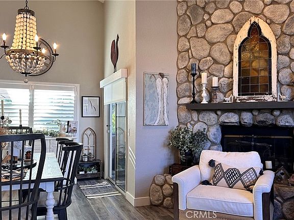 Welcome to this Modern Farmhouse in Canyon Lake! Step up to the charming front porch and enter a home that combines elegance with comfort. Inside, you’ll be greeted by high vaulted ceilings and a cozy wood-burning fireplace that sets the tone for relaxing evenings. The spacious living and dining areas feature large open windows, allowing natural light to fill the space and offering picturesque views of your serene yards. The updated window shutters and blinds make this Farm House beauty really feel like home.