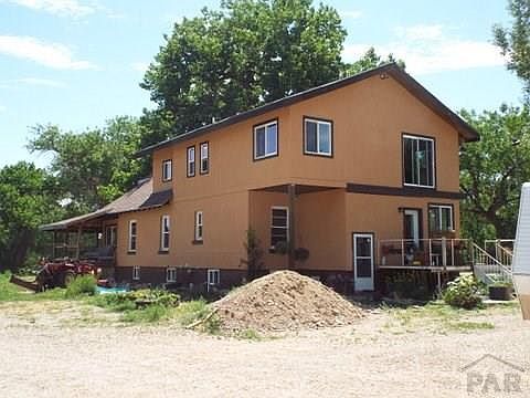 Historic Homestead on the Huerfano River with high priority water rights. Totally remodeled and refurbished Two Story home. High quality Greenhouse, Barn and Shop with efficiency Apartment. Very scenic and productive farm with supporting improvements and exceptional irrigation water rights. Grow your own food, flowers or whatever your heart desires. Water: Domestic water well and Irrigation Water Rights,Priority #7 for.35 cfs (220,000 gallons per day, 24/7) Improvements: Newly remodeled and restored, historic 2 story home with 2820 sq.ft. of living space, plus a full partially finished basement. 5 bedrooms, 3 baths, kitchen, breakfast nook,dining room, family rooms, laundry room, sun porch and more. Updated electrical and plumbing services. New insulation and windows, new stucco exterior, new roof. Beautiful woodwork and custom built kitchen counters and copper sink. Hardwood and tile flooring. High quality heated 60'x90' greenhouse. Metal shop building with efficiency apartment, Cattle barn, Hookups for RV. Large mature cottonwood trees and apple orchard with Huerfano River frontage.