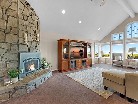 Sweeping Ocean Views at the Cove! Impeccable single story Seaside home w/open floor plan designed to maximize this lovely coastal setting. Living room features vaulted ceilings & stone gas fireplace to enjoy on stormy evenings. Kitchen recently updated w/granite counters, all new cabinetry, cook island & eating bar. Ocean view master has Euro-style walk in tile shower, jacuzzi, dual vanities & walk-in closet. Garage offers plenty of storage w/partial kitchen including full size fridge, microwave, sink cabinets. Outdoor features include paved patio w/firepit & generous ocean view Trex deck for taking in the sights & sounds of the sea. Extra lot included protects view, making this a very unique home by the sea!