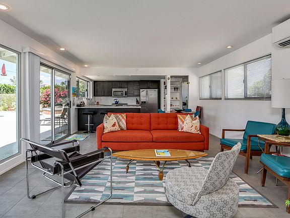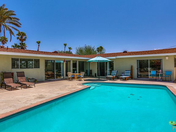 1960 Classic Mid-Century Ranch with pool and stunning mountain views. Three generous sized en-suite bedrooms, including an attached Casita with private entrance. Modern open layout in the living and dining areas with updated kitchen all with views to the pool. Fantastic desert landscaping for easy maintenance and water conservation. Enjoy life poolside and hanging out by the custom built fire pit for late night conversations and ultimate relaxation. Looking for some extra income this property has also been a successful vacation rental. If you are ready to say hello to Palm Springs and live the good life, Come take a look today! Check out Virtual Tour too.