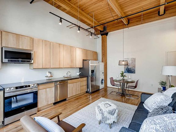 Urban Living at it's Best! No Car Needed in this Prime Downtown Location WITH LOW HOA @ $189/m! Walk to Union Station, Ballpark, Whole Foods, King Soopers, Nightlife, Light Rail, Amtrack Station, & More! Fabulous Urban Loft in the Coveted Union Station North Neighborhood! New Stainless Steel Appliances, Concrete Countertops, Abundance of countertop space & cabinets. The exposed wood timbers, exposed brick walls, 15ft Ceilings and Large windows provide lots of light throughout the day. The high ceilings are incredible and make the space feel voluminous, and the T&G wood ceiling are beautiful to look at when youâre laying in bed and reading a book. The layout of the unit is great, the bathroom really gives the bedroom and loft side a lot of privacy but still keeps it open to sunlight and a spacious feel. There is an abundance of storage in the coat closet, cabinets, and underneath the office / flex space the storage space makes this unit a truly rare find in Lodo / Ballpark areas. Rooftop space is open on July 4th to watch the Coors Field fireworks. Best fireworks views from the rooftop in Denver. Union Station, Whole Foods, King Soopers, Colorado Athletic Club, Platte River Trail, Light Rail and commuter rail to get out of the city without a car, friends can easily Park'n'Ride to come visit without having to fight downtown traffic. Same to get to the Pepsi Center for Avalanche games, and Concerts. Hop on the Amtrak and ride to Winter Park or Glenwood springs with no planning and effort. Walk to the Rockies games! And then walk to 1UP on Blake right after. Union station has so many great dinner options including Zoe Ma Ma and Milkbox Creamery. New bars and restaurants are opening every day. Hotels for visitors 1 block away. Quick walk to the RiNo neighborhood for offices, new breweries & food halls. The seller was leasing a secured parking spot in the garage across the street. Easy street parking
