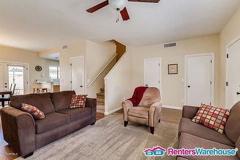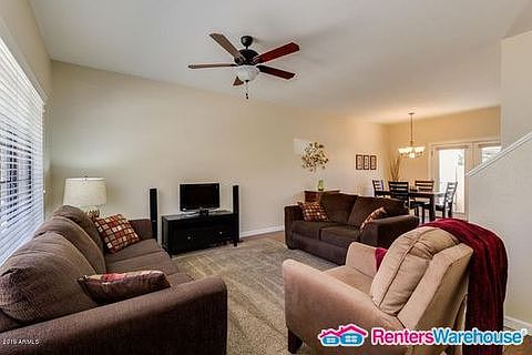 This BRIGHT, IMMACULATE townhouse located in the heart of Chandler is a MUST SEE 3bd 2.5 bath, north-south facing has a welcoming layout that you will love and DOES NOT lack storage!! Laminate flooring throughout downstairs and half bath. There is a HUGE under the stair storage closet along with extra storage on the patio. Nice kitchen with bar seating, upgraded, stainless steel appliances, refrigerator included. Full size washer & dryer upstairs. All bedroom upstairs, master has vaulted ceiling and own bath. 1 covered carport directly behind the unit out the back gate patio. CLOSE to 60-101-202 freeways and shopping and restaurants. $1495.00/mo + 4% tax; $1495.00 security deposit; $150.00 one-time admin fee. Tenant responsible for water & electric. Owner prefers no pets, however with addt'l $250 non refundable pet fee, may consider depending on size & breed. HOA ONLY ALLOWS 1 PET. Community Pool. INCOME MUST BE 3X'S MONTHLY RENT; 600+ CREDIT SCORES; GOOD RENTAL HISTORY.