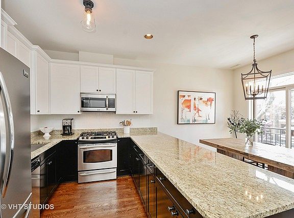 Extra wide sunlit 2 Bed/2 Bath Condo located on the border of Lakeview/Lincoln park. Tastefully upgraded and ample sized kitchen with new appliances, recently redone floors, updated bathrooms and spacious bedrooms with organized closets. Recently redone private back deck, new furnace & newer washer/dryer. Generous split bedroom floor plan with back deck & common roof top deck with City views. Garage parking included. Storage in basement. Professionally managed building. 2 blocks from Wellington Brown Line. Walk to Wrigley Field, shops and restaurants.