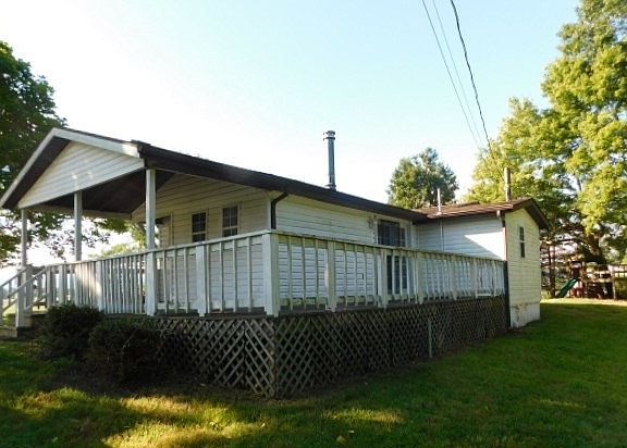 Unique two bedroom one bath manufactured home. Large living room. Good sized deck with nice views. Detached garage and storage building. Call for more informatiion today!