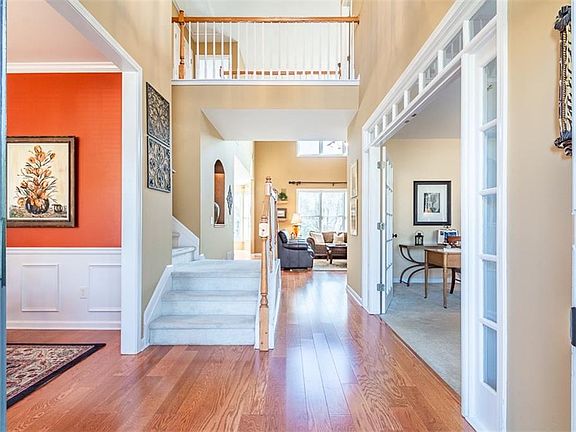 Welcome home to this 5 bed 3 bath home in desirable Saddlebrook Glen neighborhood. Double height foyer greets you and your guests along with large formal entertaining areas. Hardwoods in most of the main floor. Family room with wall of windows and cozy fireplace. Large kitchen with stainless steel appliances, granite counters and butlers panty leading to dining room. Main level bedroom can be used as office or den; has access to full bath. Breakfast area has access to fenced backyard. Four bedrooms upstairs including large master suite with tray ceilings. Double vanity, separate tub and shower in master bath. Large landscaped backyard has patio and is fenced and provides plenty of privacy.