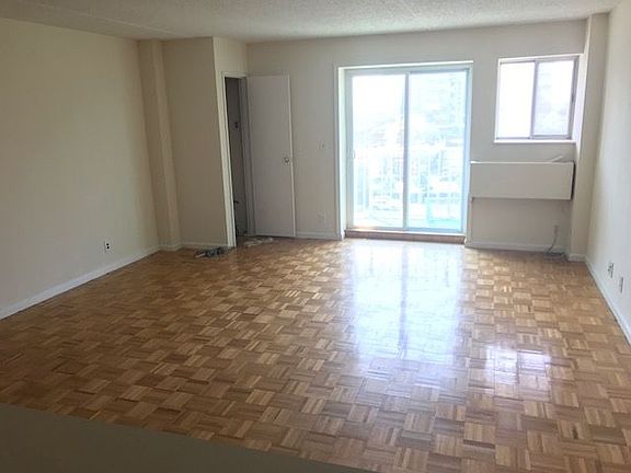Large 1 bedroom with open kitchen. Wood floors, Lots of closet space, balcony, Located in a 24 hour doorman elevator building building with renovated laundry room and lobby. Beautiful patio area for tenants, pet friendly, outdoor play area for children, fenced in dog run, Parking available. No broker fee.
