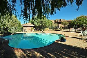 Panoramic, unblockable red rock views from this beautifully designed & quality built luxury home, & this 3.24 acre property backs to National Forest for added privacy. Custom cherry cabinets throughout; gorgeous Gourmet Kitchen w/Viking 6-burner+griddle&dbl. oven, Viking D/W, Subzero, beautiful granite c-tops, open Living Room w/stacked rock floor-to-ceiling FP & magnificent red rock views, DR w/walls of glass, spacious MBR w/huge views & also opens to the back patio & pool, fantastic Family Room + add'l In-Law Qrtrs, 5-car Garage+35' RV garage, incredible backyard w/pool & spa, covered & open patios, outdoor FP & impeccable landscaping. Expansive views capture red rocks in every direction from nearly every room & the outdoor environment can't be beat.... (see supplement for full remark Brokered And Advertised By: RE/MAX Sedona Listing Agent: Bruce Tobias