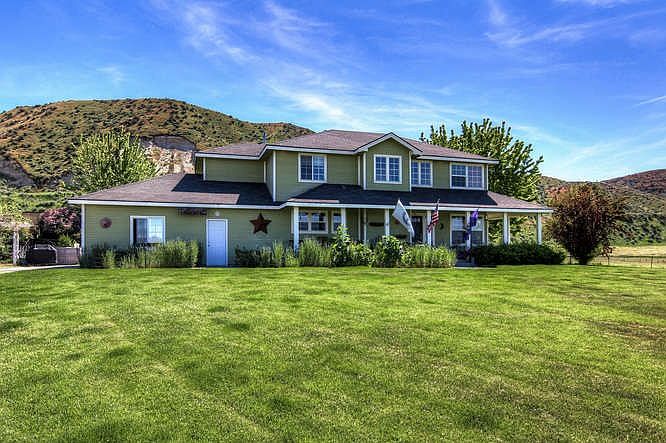 Living at itâÂÂs best! Tranquil setting,views of the mountains,6 acres,partial wrap around porch,4 bedroom,2.5 bath home all located along the south slope of the Emmett Valley.Main living area shows of the views with windows in the office space.Kitchen has butcher block island w/double ovens.Great room has beatuiful view of the back acreage & new pellet stove. Second floor hosts all the bedrooms incl the master suite with sitting room & soaker tub. Acreage has several garden spaces, fruit trees & irrigat