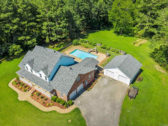 One Owner Custom Built Brick Home with saltwater pool on over 14+/- acres! 5 bedroom, 3.5 bath home features NEW ROOF in 2023, New Kitchen Applicances, Open Concept, Tall Ceilings, NewTankless Waterheater, spacious kitchen, large rec-room plus extra bonus room, sunroom, formal dining room, hardwood floors, 2 bedrooms on the main level, 30x30 Shop/ Detached garage and much much more!