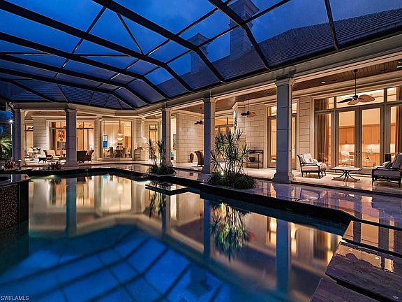 H.10997 - Exceptional, one of a kind estate located in the exclusive community of Estates at Grey Oaks situated on a double lot. Palatial and magnificent, this 5 bedroom + 2 study home blends sophistication and finish throughout its 13,416 Sq.ft. of living space. Features include marble and wood flooring, coffered ceilings, 7-car air conditioned garage spaces + golf cart garage, linear diffusers, theatre room, sauna and steam rooms, stunning billiards room, wet bar, his and her studies, gas fireplaces, his and her walk-in closets with beautiful finishes and much more. The 2-bedroom guest house encompasses 3,414 Sq.ft. of living space and has a large master suite with walk-in closets, family room and kitchen. The expansive lanai is perfect for entertaining or relaxing with the family with a beautiful 50' custom pool with sun shelf and spa, pool bath, extra storage, outdoor fireplace & kitchen and golf course views. This Grey Oaks address enjoys world class golf & amenities yet is advantageously close to the art galleries, boutiques & bistros that make living in Naples a true luxury.
