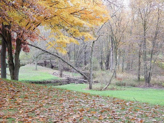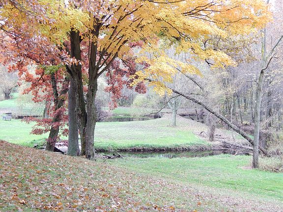 This is the outdoorsmen dream, 7 acres with Black Creek running through the back yard and 3 ponds fed from the creek. Large newer 3 stall detached garage with 1 taller door for your RV parking. The garage is finished and has electric, heat and a full bath. Fenced in back yard as well as a fenced in In-ground pool to enjoy will watching the wild life. This home sits at the end of a cul-de-sac and is very private. The house sits back of the road behind the trees and you have paved parking in front of the garage off to the side of the house. Wood floor through the kitchen and the dining area and a laundry chute. 2 Bedrooms on the main floor and the whole upstairs could be used as a bedroom and sitting area.