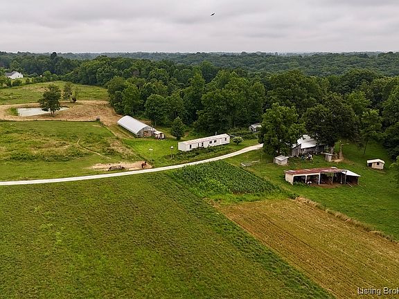 This sprawling property offers modern conveniences if desired for use, blended with the more laid-back, simple living off the land lifestyle. The cabin-type home offers 3-bedroom setups and one bathroom equipped with just a shower. The total square footage is right at 2170. A wood-burning stove is used for heat in the winter, while the mature tree canopy over the home provides shade, keeping the house at a relatively pleasant temperature during the summer. While not in use, public water and power are at the home site, along with fiber internet at the driveway. The barn is a well-constructed 36x40 with a hay loft and also includes an 18x40 lean-to. The land itself is almost a 50/50 mix between open hay/ farmable and timber. The open pasture has some fencing along with a pond, while the other side of the driveway is used more for hay, farming and garden space. If desired, this tract provides enough room to add home site locations on its NW or SE sides. If you're into gardening, wait until you see one of the best planted raspberry and blackberry patches around; these produce thick, lush and sweet berries like no others. The timber part of the property has some very nice mature white oaks, mixed with walnut, poplar, maple and hickory. A food plot is in place that will need a little mowing, spaying and planted before fall, but light duty work that could be done in a day. It has a perfect tree for a stand that lets you cover the area well.