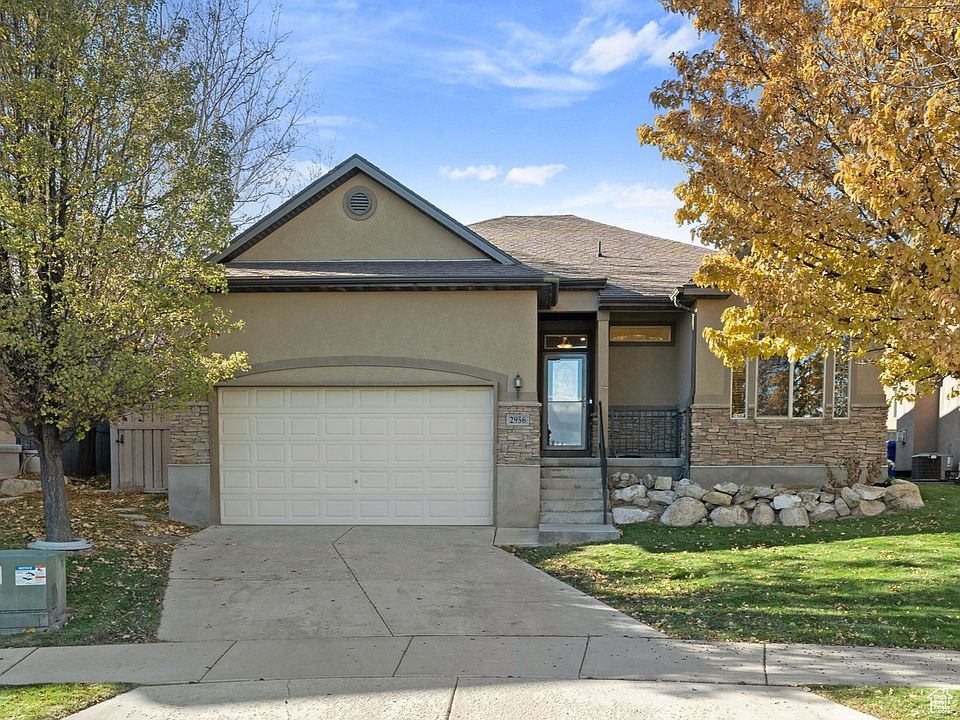 OPEN HOUSE, THIS SATURDAY DECEMBER 14TH 11AM-1PM. Welcome to this spacious updated rambler that feels like home. With high vaulted ceilings and beautiful newly refinished real hardwood floors, this space is open, warm, and inviting. Enjoy relaxing by the fireplace, and appreciate the fresh feel with new CARPET and PAINT throughout. Located in a quiet circle, this home is situated across from open green space and walking trails, offering breathtaking views of the Wasatch Mountains. The .14-acre lot features a 2-car garage and a relaxing back patio, perfect for enjoying sunsets under the awning while surrounded by mature trees. An unfinished basement provides a fantastic opportunity for expansion, already framed, insulated, and designed for 3 additional bedrooms, a bath, and a spacious living area. All appliances are included, making this home move-in ready. Don't miss out on this chance to create your ideal space!