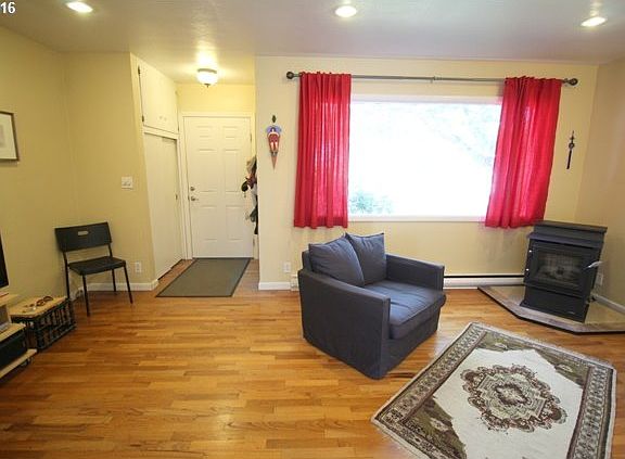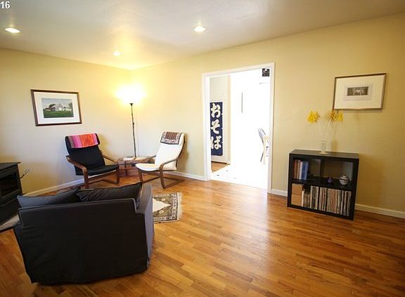 Very charming bungalow in highly desirable SE Eugene neighborhood. Open floor plan features gleaming hardwood floors, spacious kitchen, and tons of built-in storage. Owners have made many upgrades with a pellet stove, efficient double or triple glazed pane windows and replaced sewer line. Fantastic neighborhood is close to everything- walk to shopping, bus, schools, restaurants and parks!