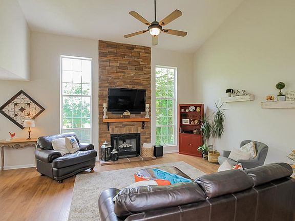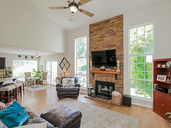 A beautiful home with a soaring 2 story stone fireplace, granite countertops, tile backsplash, newer wood floors thru-out main level, stainless steel appliances, open kitchen and living room, master bedroom downstairs, fenced in backyard with a beautiful deck and patio doors, mature landscaping, privacy, renovated bathrooms with new tile shower in master bathroom, large bonus room, neighborhood pools, tennis courts, playground, and much more.