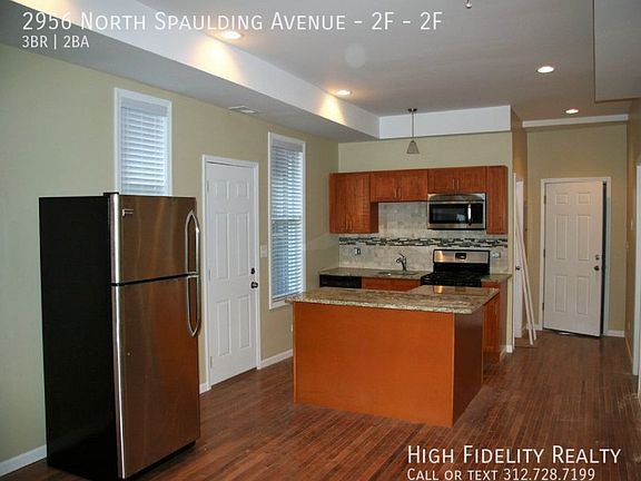 Available May 1! Huge duplex up apartment with in-unit laundry! This 3 bedroom plus den, 2 bathroom unit features modern kitchen with countertop boar, dishwasher and microwave. Hardwood flooring is throughout the unit with a large living room, queen sized bedrooms, an extra room perfect for a den of office ample closet space, and an updated bathroom. There is in-unit laundry, central heat and air conditioning. Small dog (some breed and weight restrictions apply) or cat allowed for additional fee. Give us a call to schedule a showing now! This Logan Square unit is the perfect location. Just off Milwaukee Avenue, you'll be just blocks from the bustle of Logan Square where you'll find endless nightlife (The Owl, Slippery Slope, Cole's), excellent restaurants (Chicago Diner, Cafe Con Leche), cafes, and boutiques! Close to the Logan Square Blue Line, Kimball and Diversey busses, and the Healy Metra Stop, it's a great location for commuters.