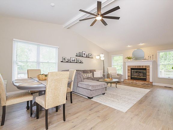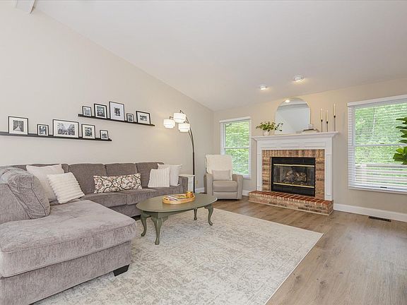 THREE bedroom, THREE full bath condominium with a TWO car garage in a wonderful location in St. Charles. Home sits on a quiet street and backs to trees-very private. Fresh, neutral paint throughout, with several updates! New luxury vinyl plank and new baseboards throughout main level. Great room has a gas fireplace (recently inspected) and is open to the dining area. Kitchen has updated white cabinets, new counters and backsplash, and several new appliances. Breakfast room is attached to kitchen and leads to deck, which has been repaired and painted. All three of the full bathrooms have been updated.Master Bath includes a walk in closet. New light fixtures throughout, as well as new faux wood blinds. Lower level (new carpet on stairs) is a walk out, with a patio under the deck.Very light and bright lower level with the third bedroom and full bath. Main floor laundry.HOA covers landscaping, snow, some insurance, some exterior maintenance, as well as WATER, SEWER, AND TRASH. NEW ROOF! Location: End Unit, Ground Level, Suburban