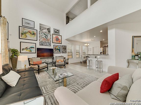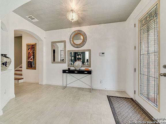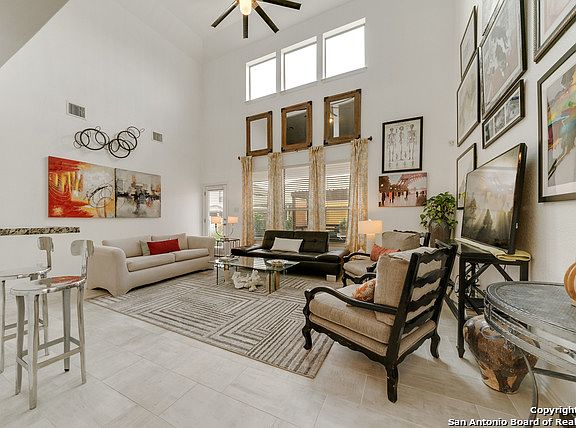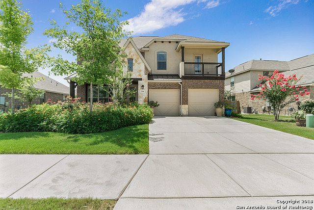 Come see this MASTERPIECE inside and OUTSIDE! Gorgeous landscape. Makes you want to come home to this amazing 5 beds, 31/2 baths, Study/Formal Dining. First level features Wood and Porcelain floors, High ceiling, SS Appliances. Oversize master bedrm. bath with Corian Counter Tops, 2 walk-in Master Closets, Guest Rm. has private suite with balcony, Lge Game Rm. Pergola & Patio, Irrigation & Water Treatment System, Easy access to RAFB, Ft Sam, Shopping & restaurants, IH-35, 1604. Welcome Home!