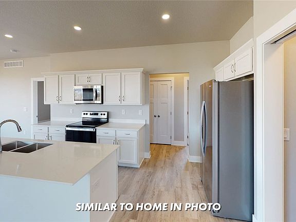 Plan (Canyon). Destiny Homes presents their Canyon floor plan with 3 car garage. Due to lot availability, this is the last Canyon plan that can be purchased out in Prairie Ridge! This ranch plan with finished lower level includes 4 bedrooms, 3 bathrooms, and approximately 2400 sq. ft. of living space to enjoy! With 2 bedrooms & 2 Baths on the main, including the Primary en-suite w/ double vanity, walk in shower, and walk in closet, this home has a great layout to spread out in! The kitchen features a large walk-in pantry, 10 ft island, and quartz countertops. The adjacent dining space opens up to the covered patio. The great room has an abundance of natural light from the large picture windows, and is complimented by an electric fireplace. The drop zone from the 3 car garage and main floor laundry make it convenient and stress-free to keep the essentials all on one level. As always, Destiny's 2 year builder warranty brings a peace of mind you can trust. Ask about $2,000 in closing costs provided by the preferred lender. Call to schedule your showing today!