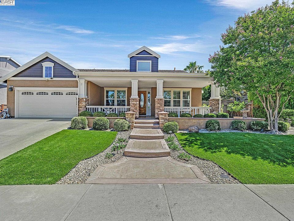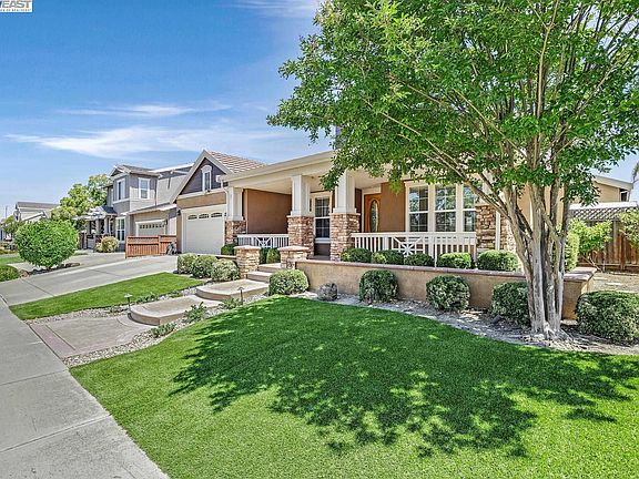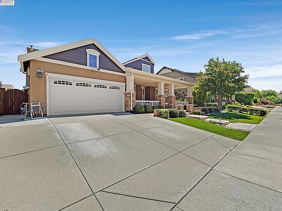 Great location in Kristopher Ranch. Beautiful single-story home with no rear or front neighbors. 4 bedrooms plus an office, 2.5 baths, 2 car garage with newer roll up door & opener, 2700+ square feet on a 9,300+ square foot lot. Gourmet kitchen features granite counters, oak cabinets, tile floors, gas cooktop, double ovens, microwave, lots of counter space, breakfast bar, breakfast nook, plus more. Large living room with fireplace and newer laminate flooring, formal dining area, family room with fireplace & custom built in entertainment center, newer laminate flooring. Big primary bedroom with laminate flooring, primary bath features jetted tub, oversized stall shower, walk in closet with additional shelving & hanging racks. Garage features built in cabinets and attic storage.Custom built-ins in office. Fully landscaped backyard with stamped concrete, & NBA style Basketball hoop, synthetic turf in front and backyard, dog run area. Tiled front porch, 3 ring security cameras plus alarm system, central A/C, dual pane windows with custom window treatments. Leased solar system is $205 per month. Average electric bill is $10 per month. Close to shopping, transportation, & downtown. O/H 7/23 1:30-4pm