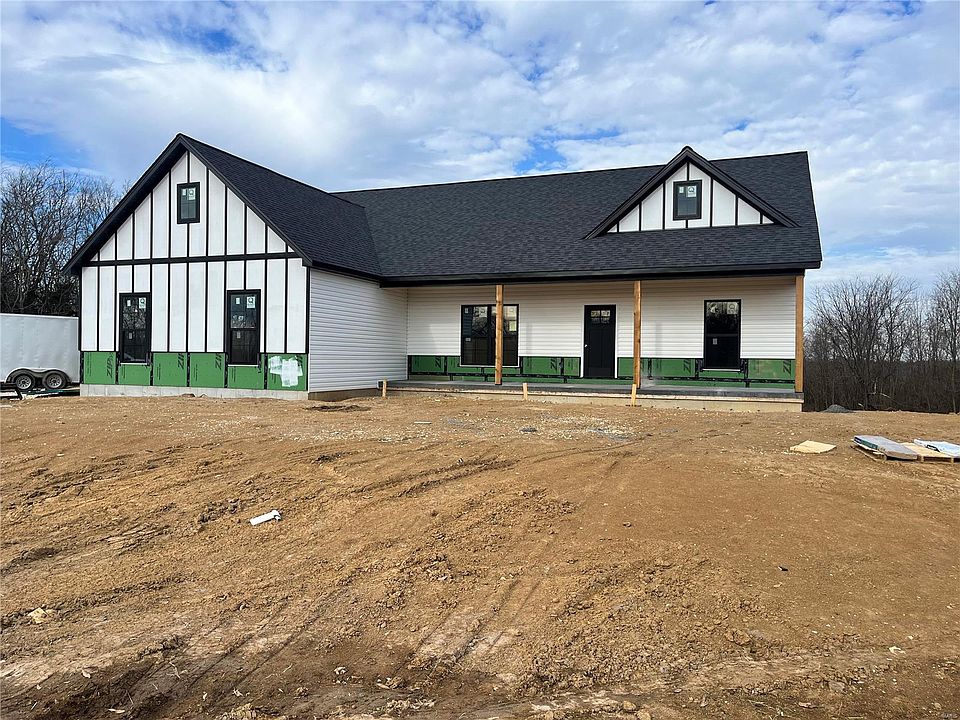 NEW CONSTRUCTION!! This 1800 sq ft new construction home is settled on 3.27ac in a quiet Warren County Subdivision. Features 9ft vaulted ceilings. Kitchen features granite countertops and stainless-steel appliances. Walk out of your kitchen onto your covered deck, perfect for those warm summer nights. Master bedroom features a walk in closet and a master bathroom that has custom tile shower. 2 additional bedrooms with full hall bath. 3 car side entry garage is perfect for your vehicles and/or storage. Front Elevation will have peaks instead of gables. Photos are of spec home for reference.