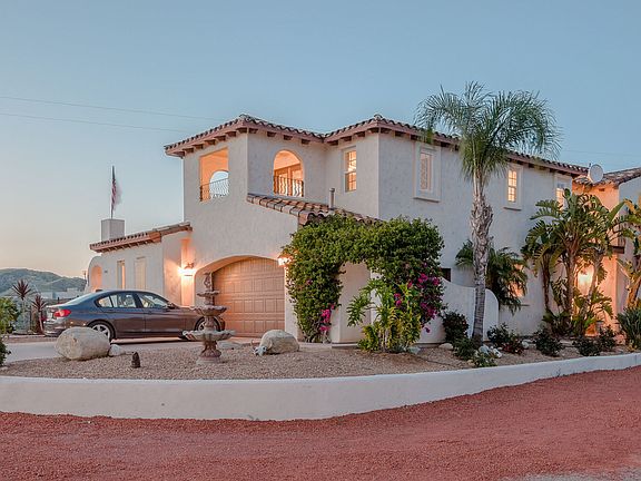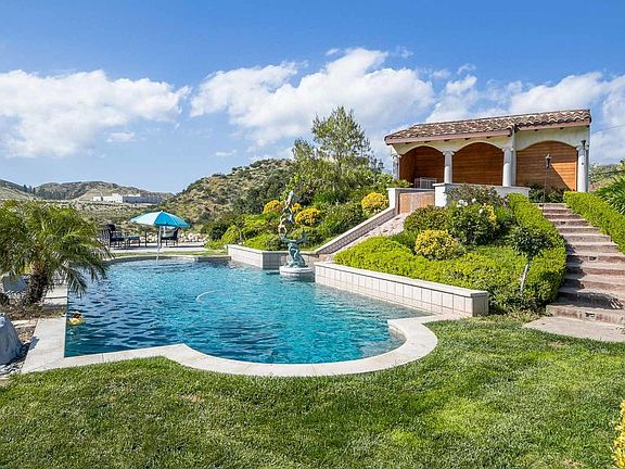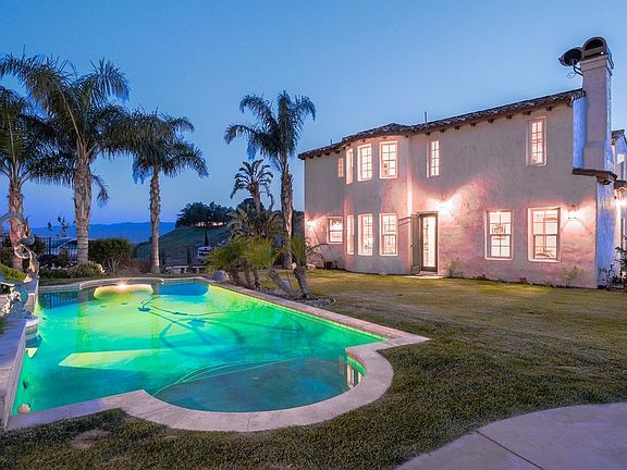 Last chance to own!! Submit all offers or it will be gone! Custom home and an In-laws guest house along with caretaker studio! 360 degree views from your own 5+ acre private knoll top accessible by two private driveways. Certified pad - build your own 4K sqft workshop or 3rd house! 2 full sized houses on 1 lot! Front courtyard & fountain give way to a rustic door that opens up to a natural stone-like floor that extends into the formal living room & dining room. French doors & high ceilings make for excellent indoor/outdoor flow. Gourmet kitchen w granite counter tops, stainless appliances & breakfast nook. Family room w wood burning fp opens to large grassy rear yard w pool, spa, waterfall & views. Master suite complete w fireplace, his & hers walk in closets, vanities, a Jacuzzi, and a 4 head shower. Each bedroom has its own private balcony. In addition there is a huge Detached guesthouse w/center island kitchen & balconies Separate studio apartment below w kitchen & 2 car gar.