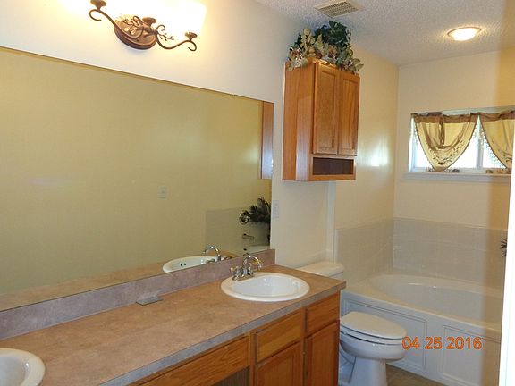 Open floor plan 3 large bedroom, 2 bath home with tile, wood floors & carpeted bedrooms for comfort. Located in a cul de sac. This home features high ceilings throughout, large bedrooms & a fully equipped kitchen with bay windows. There is a fireplace located in the living area & a covered patio area on the back of the home. Large master suite with walk-in closet, & master bathroom with garden tub, stand-in shower & his/her sinks. 2 car garage & nice sized laundry room. Close to pond