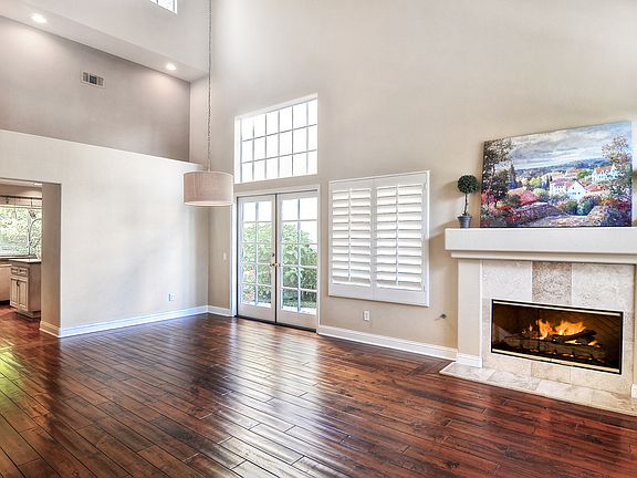 Location! Location! Wonderful location inside the 24 hour Guard Gated community of Newport Canyon. No street noise.. Quiet serene yard that backs up to a wonderful view of trees and foliage. Largest model, 4 BD, 3 BA, 3 car garage, 3 fireplaces. Open floor plan with vaulted ceilings and kitchen bar area that seats 4 bar stools. One bedroom on main level and bath downstairs. Hardwood floors, remodeled kitchen with granite counter tops, stainless steel appliances with a water faucet over the stove. A gourmet cooks dream. Master bath with travertine tile, frameless shower and sunken tub. Convenient location in Newport Beach, close to Back Bay Trails, Restaurants and Shopping.