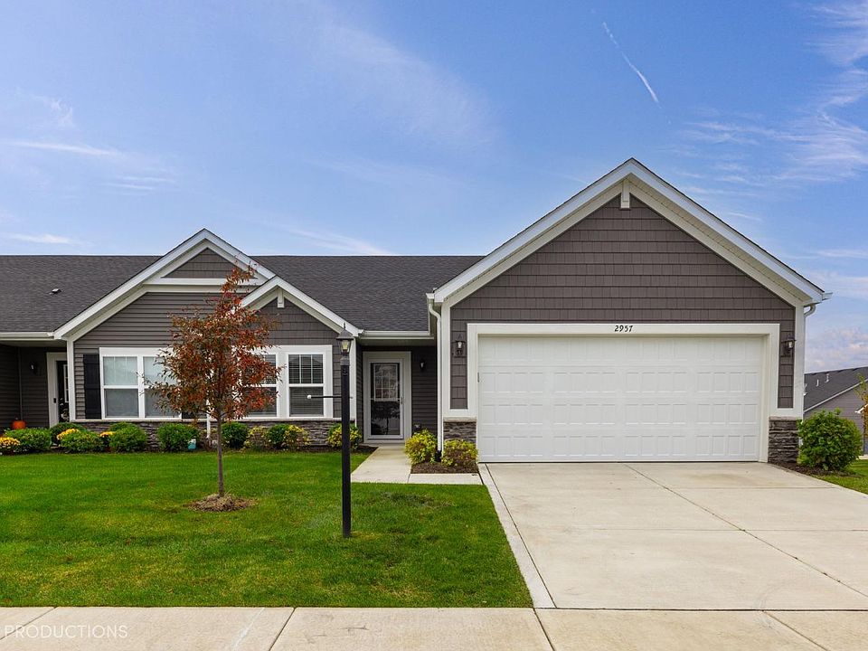 Move-in ready paired patio home in Pepper Cove. This like-new 2 bedroom, 2 bath main level living home features an open concept living space ideal for entertaining. The kitchen has granite counter tops and stainless steal appliances. The primary bedroom has an attached bathroom and walk-in closet. A nice flex room is located at the front of the home. Access the patio via the sunroom located off the dining area. The second bedroom, additional full bath, and finish laundry room complete this home. Upgrades include: Insulted garage, garage heater, storm door, water softener, reverse osmosis, window blinds, & shower door in primary. The HOA covers the Lawn Maintenance and Snow removal. Sidewalks and a neighborhood Pond. Call us to schedule your showing today!