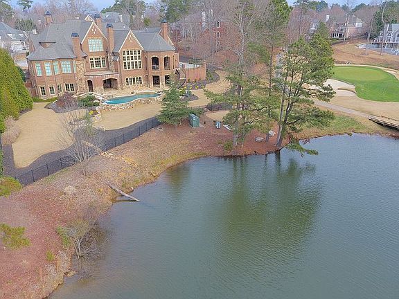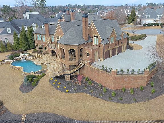 Extraordinary & unique! Gorgeous brick-n-stone estate on 1.42 acres with captivating lake & golf views creates an amazing oasis. Custom designed & built with highest craftsmanship. Spectacular two-story kitchen & keeping room with beamed ceilings is the hallmark of the home. Fabulously livable floor plan includes elevator, two master suites, large secondary bedrooms, two laundry rooms & spectacularly finished terrace level.The backyard area is la creme de la creme with its covered porch w/outdoor kitchen, outdoor fireplace and sparkling pool/ spa plus the awesome views!