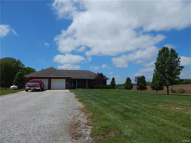Incredibly peaceful country setting on 10 acres. This 3 BR, 2 Bath brick ranch would be a great place to bring your horses. Currently part of the land is being farmed, but could be turned into pasture. There is a small pond on the property & trees as well. This home has vaulted ceilings in most of the rooms on the main level along w/ skylights in the kitchen/dining area. Great view of the 30x15 inground pool surrounded by a 74 x41 pad of concrete...great for entertaining. Walkout basement with large family rm.