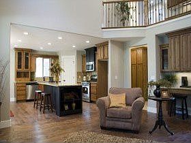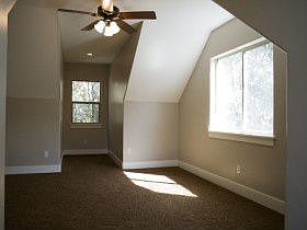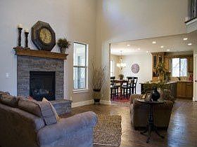 Shady back yard with stream and covered waterproofed decking. Double vaulted family room, 2 story fire place. Hand scraped plank flooring. Granite and