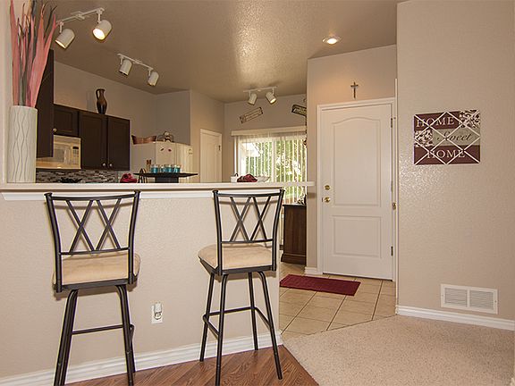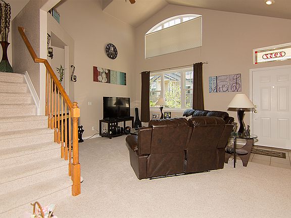 Must see! Dramatic impression from your 1st step inside. Vaulted ceilings, cathedral windows and firelplace...spotless clean and bright! Custom backsplash tile in updated kitchen that opens to the dining and living area. Private patio for bbqs and freedom for an animal. South facing entrance opens to a lawn/open area. Upstairs in the master with a dual shower head in the shower and walk in closet. Basement is the perfect finish with living area, French doored office, 3/4 bath and bedroom.