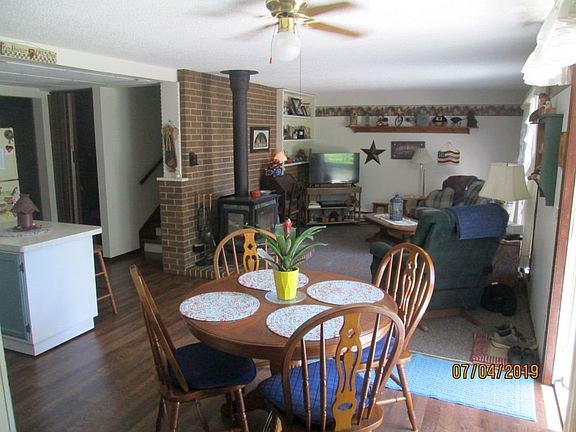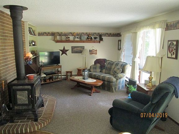 Berm home on 5.62 Acres is much larger than it appears. 3 Bedrooms + Den and 2 full Baths. Renovated kitchen with Island & Pantry. Large Living room addition. Most windows are Anderson. 1st floor laundry. Updated flooring. New, Larger Septic approx 2 yrs. Soap Stone Woodburner can be used to heat the entire home. 32 x 48 Pole Barn with Concrete Floor & Separate Electric. Wood Shed & Storage Shed. Built for Solar Panels. 2nd Driveway at East End of the Property. Beautiful yard with Apple Trees & Grape Arbor.