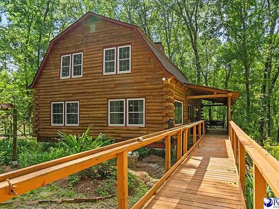 Welcome to your own slice of paradise and tranquility in McBee, Sc. This stunning 1.5-story log cabin home, built in 1977, is a rare gem nestled in the woods, spanning 1,857 square feet and surrounded by a total of 34.8 acres of beautiful forestry, featuring Cherry Blossom, Cypress Birch, Magnolia, Pine, Tea Olive and more. Imagine relaxing on the porch as the sweet smells of nature surround you. Every inch of this property has been meticulously maintained, offering a perfect blend of country rustic charm and modern amenities. The front porch offers a tranquil view overlooking a small garden sitting area and open views of the forest. Step inside to embrace the ultimate living experience in this 3-bedroom, 2-bath log cabin home. The interior features beautiful pinewood and cedar flooring throughout, updated appliances, a tankless water heater, a gas fireplace, public water, a septic system, HVAC unit, custom-made bookcase, a screened back porch and much, much more. No detail was overlooked in making this a comfortable retreat for you and your family. The second floor owner's suite is a haven of tranquility, complete with a cozy bath room with a walk-in tub. The open kitchen is adorned with beautiful natural wood cabinets, tile flooring, and fully functioning appliances, including a relatively new Whirlpool refrigerator. The screened back porch, easily accessible from the kitchen, is perfect for enjoying your morning coffee or evening relaxation while listening to the whistles of the wind filled of song from the birds. Additionally, there is a third room on the first floor that could be used as an office, recreational space or turned into a guest bedroom. The property also includes a detached storage shed. All rooms and the back porch feature picturesque views of the forest from any angle of the home. Whether you're looking for your forever home or your own private getaway, this log cabin home has it all! Sale of the property consist of four (4) parcels together! Don't miss out on the chance to call this slice of paradise your own! Schedule a viewing today and make your home dreams a reality.