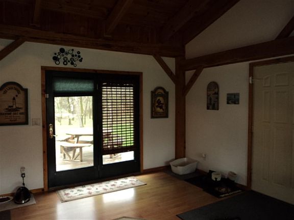 Whispering Pines Chalet: 1800+ sq. ft. log-sided post & beam style home on1.5 acres in Whispering Pines subdivision. Home features cathedral ceilings throughout main level, spacious liv. rm./floor-to ceiling windows, gas fireplace, open staircases to upper & lower levels & 2 bdrms/full bath. Kitchen promotes great workable layout, ample counter/cupboards, breakfast bar, pleasant dining area, and library to relax. Upper level houses master suite w/full bath. Attached double garage, deck, and level lot.